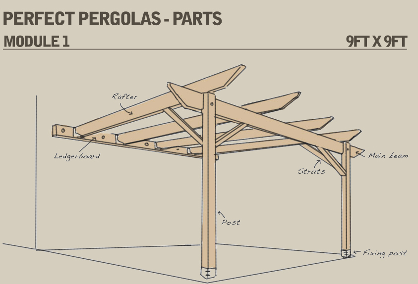 Please see below a drawing that shows all the constituent items that are needed in order to successfully build your pergola. Once you have chosen the length of pergola you require, just tick the option on our ordering page and leave the rest to us. All of the necessary components will be automatically calculated and added to your order – making it easier for you to concentrate on just the assembly.